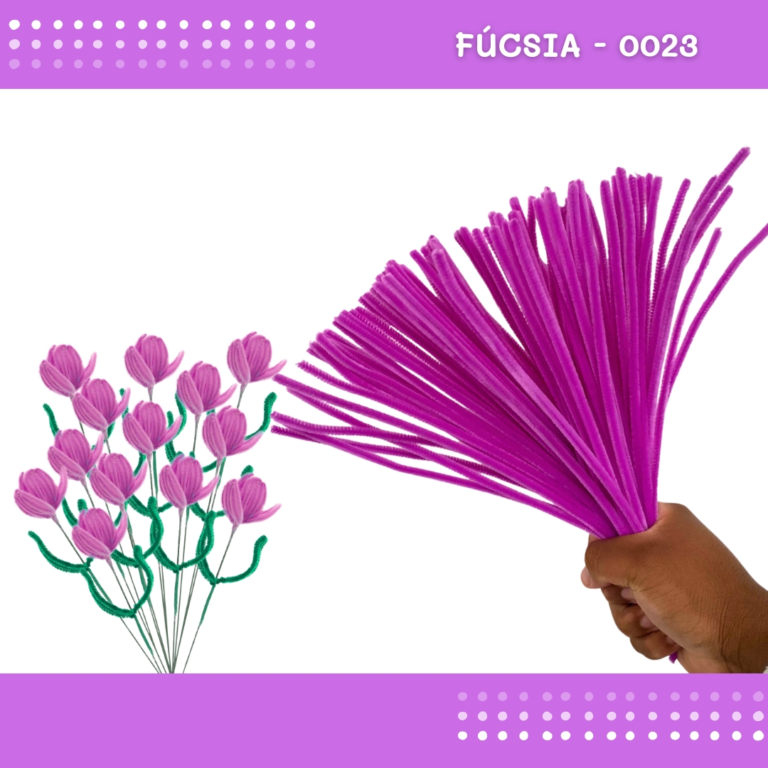 100 Haste De Chenille Limpador De Cachimbo Fios Artesanato 30cm Cor: Fucsia-0023