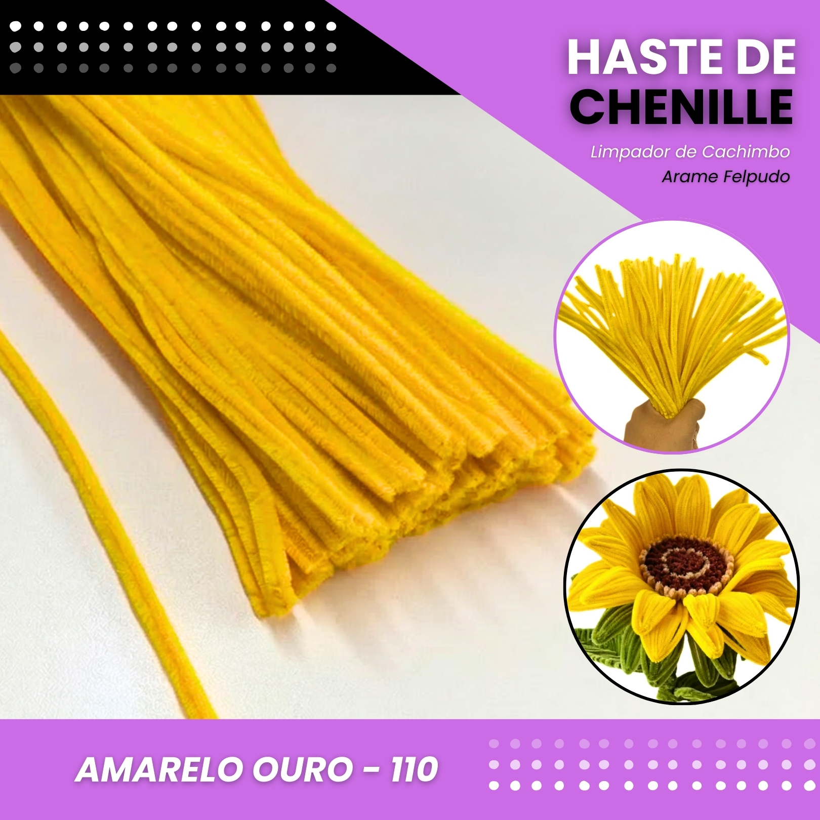 100 Haste De Chenille Limpador De Cachimbo Fios Artesanato 30cm Cor:Amarelo-Ouro-110