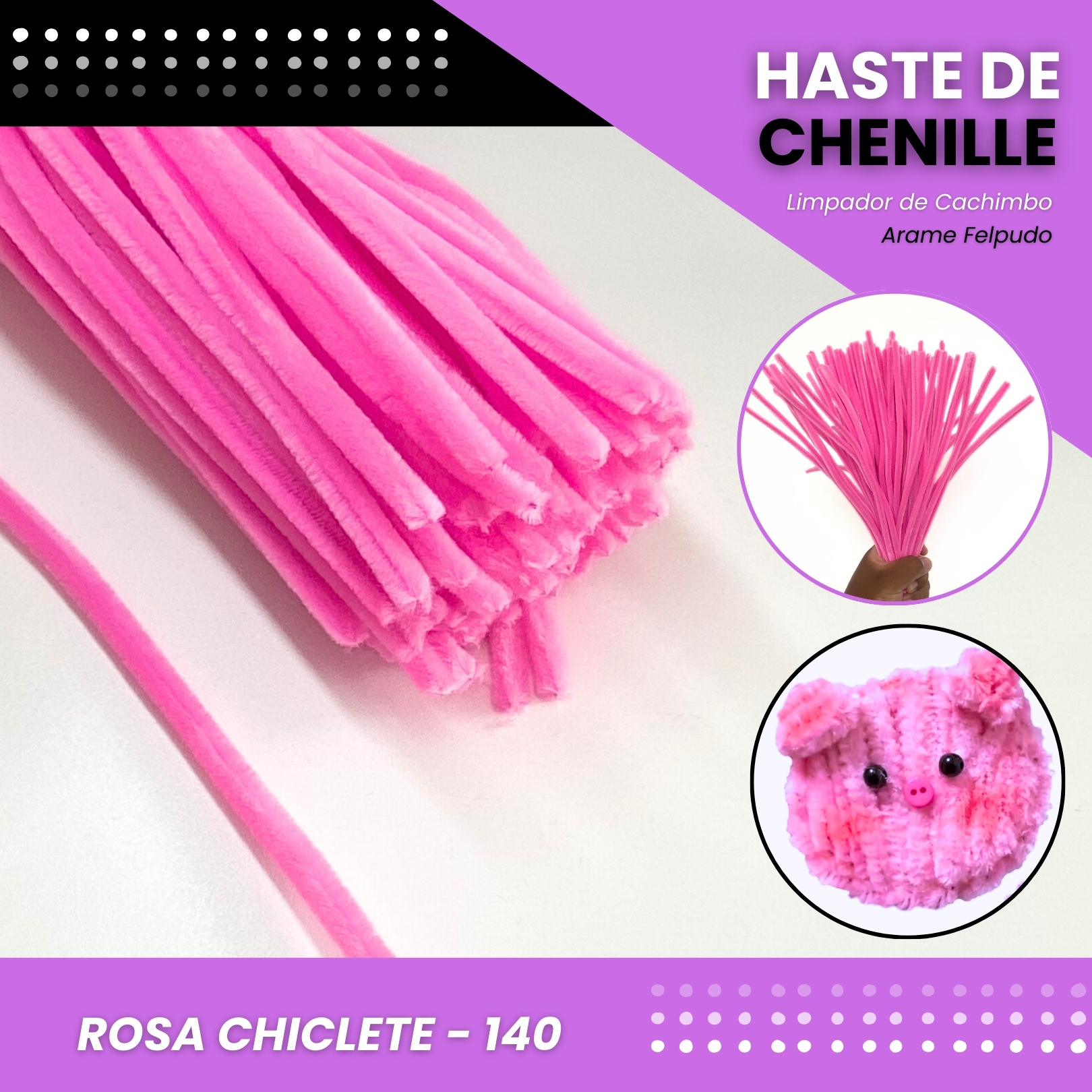 100 Haste De Chenille Limpador De Cachimbo Fios Artesanato 30cm Cor:Rosa-Chiclete-140