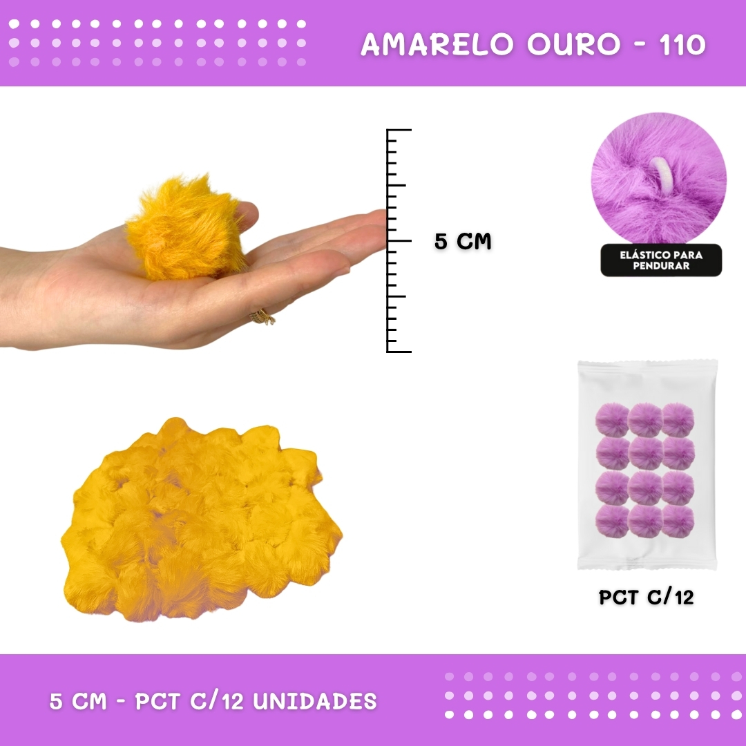 12 Unid. - Pom Pom Pelucia - 50mm COR: AMARELO-OURO-110