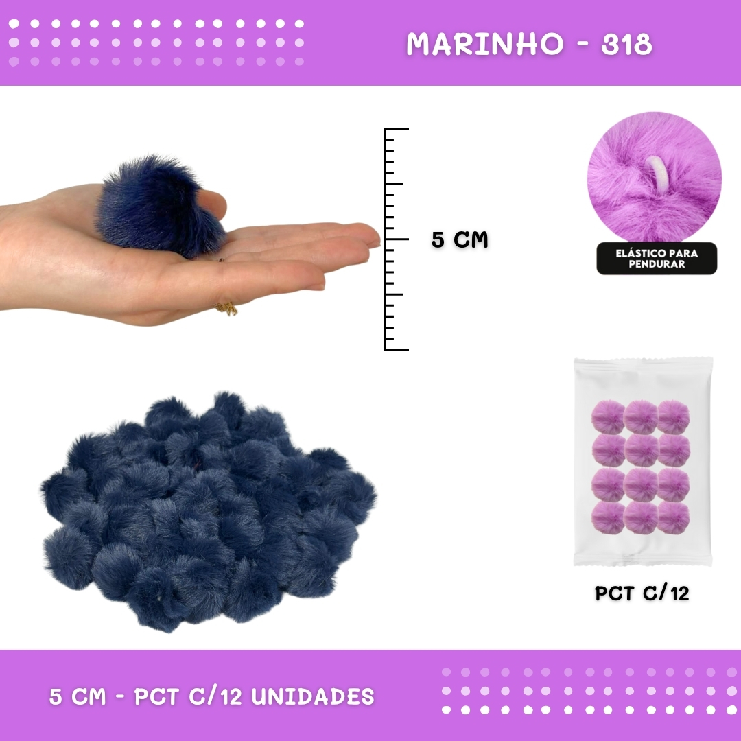 12 Unid. - Pom Pom Pelucia - 50mm COR: MARINHO-318