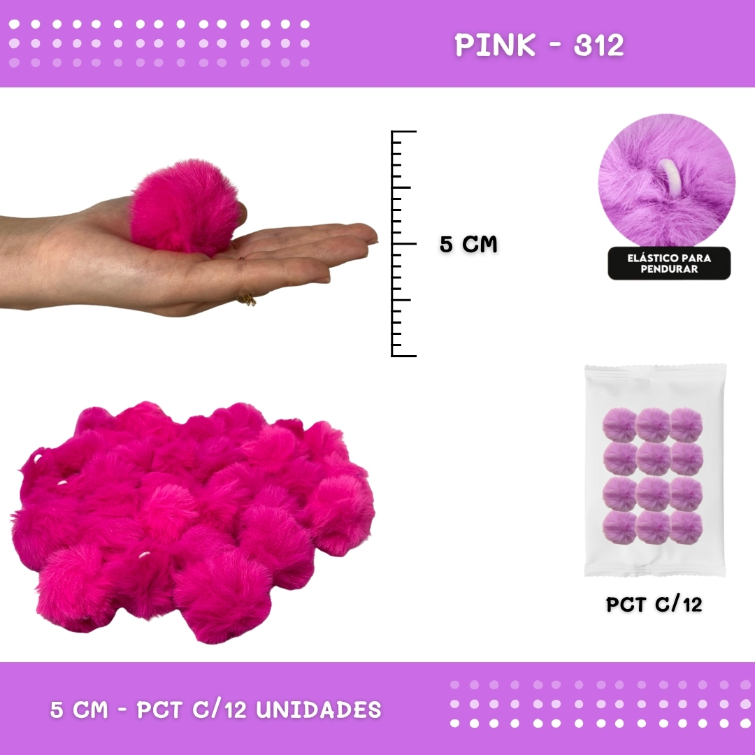 12 Unid. - Pom Pom Pelucia - 50mm COR: PINK-312