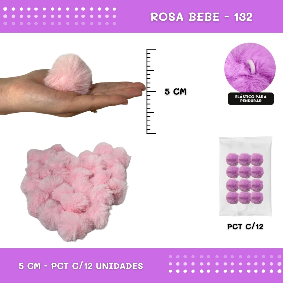 12 Unid. - Pom Pom Pelucia - 50mm COR: ROSA-BEBE-132