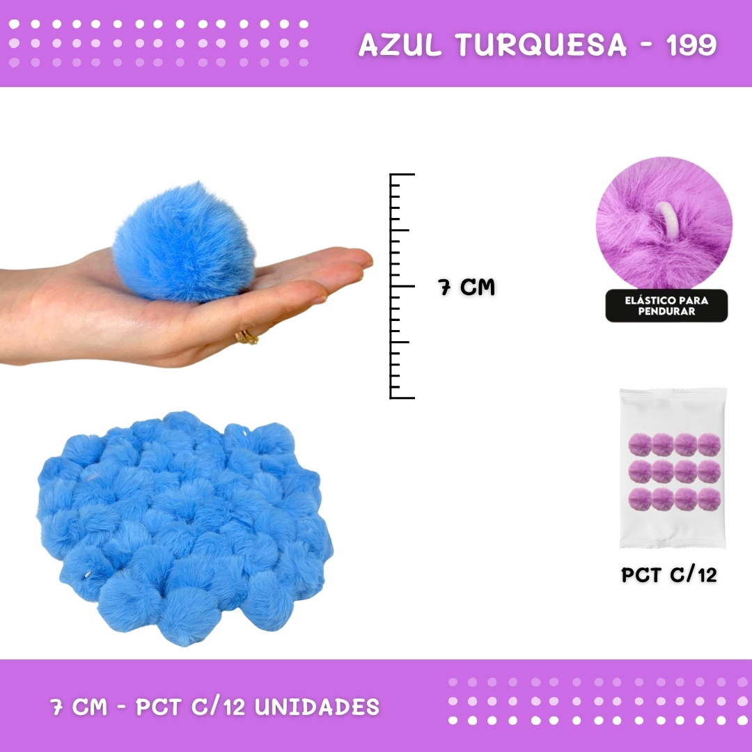 12 Unid. Pom Pom Pelucia - 70mm COR: AZUL-TURQUESA-199