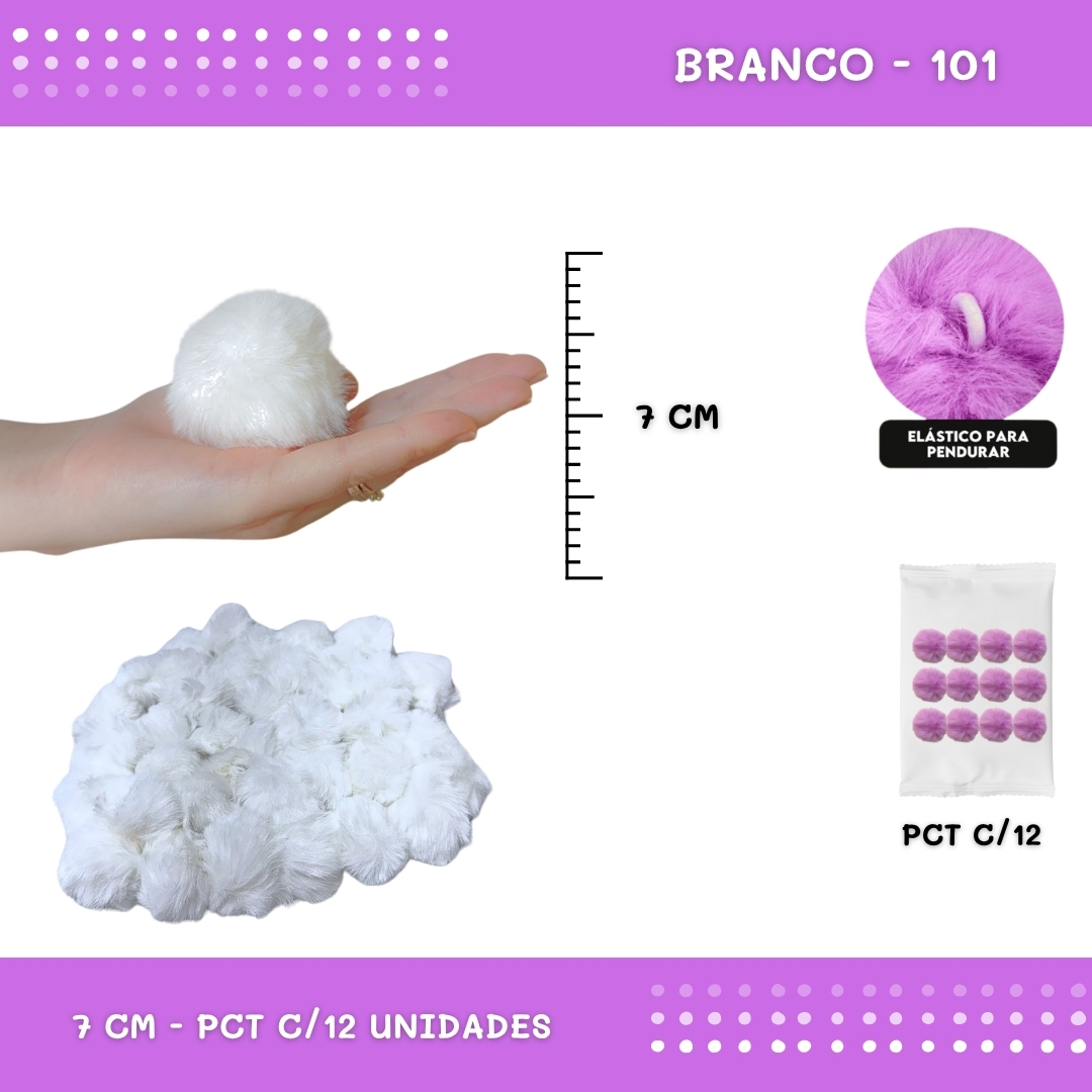 12 Unid. Pom Pom Pelucia - 70mm COR: BRANCO-101