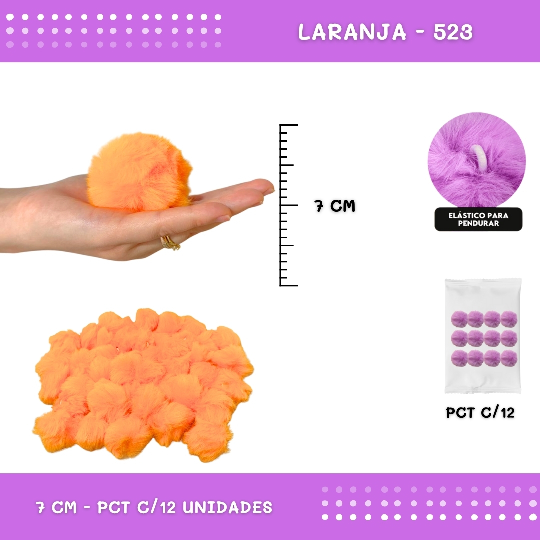 12 Unid. Pom Pom Pelucia - 70mm COR: LARANJA-523