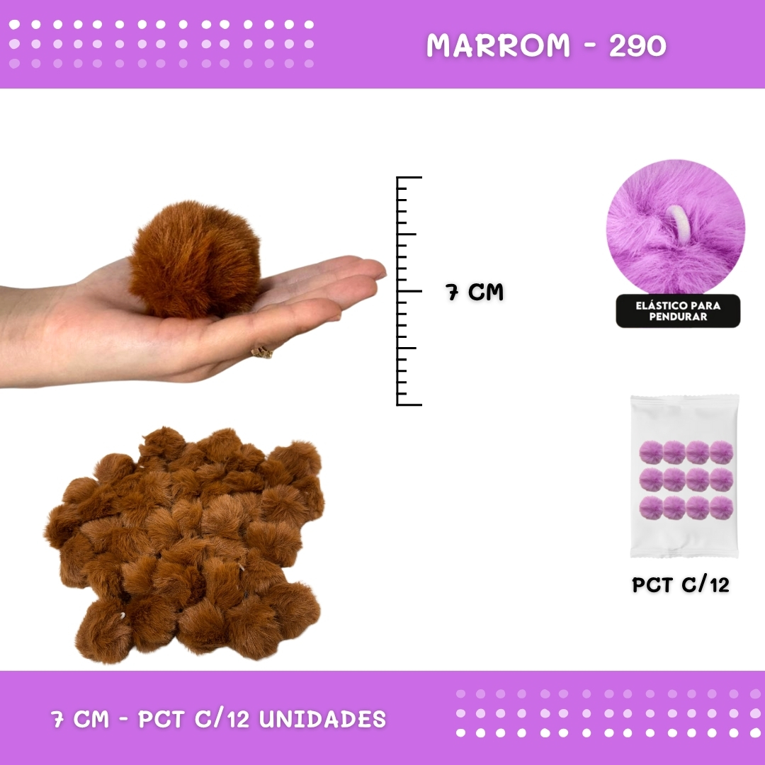 12 Unid. Pom Pom Pelucia - 70mm COR: MARROM-290