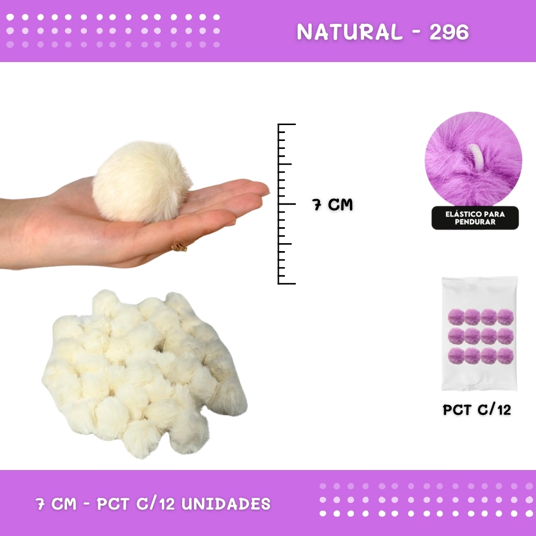 12 Unid. Pom Pom Pelucia - 70mm COR: NATURAL-296