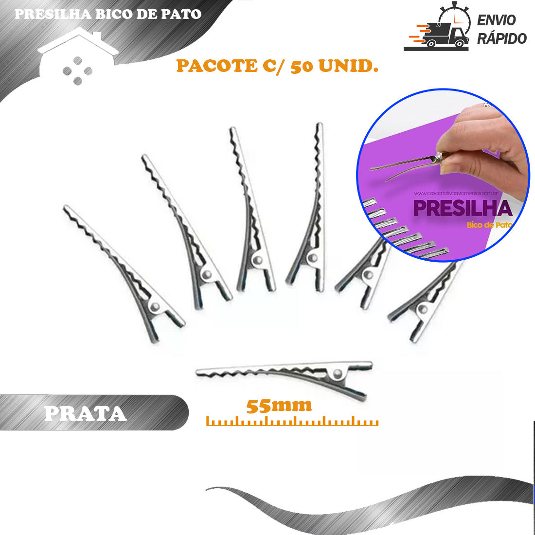 50 Presilhas Bico De Pato - 55mm - COR:PRATA