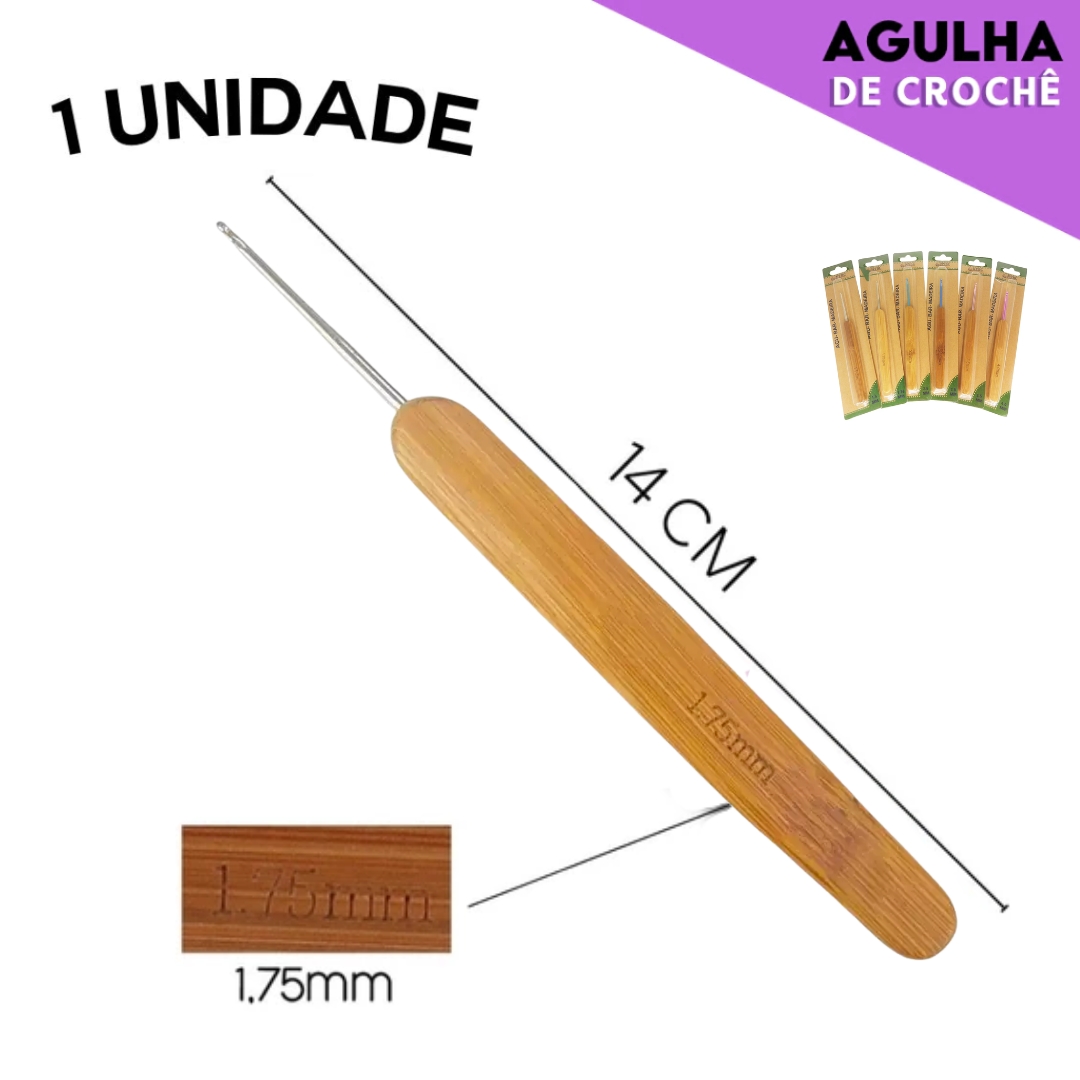 Agulha de Crochê Cabo de Madeira Anatômico - Cartela C/1 Unid. Tam:1.75MM
