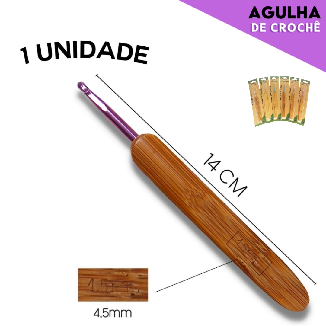 Agulha de Crochê Cabo de Madeira Anatômico - Cartela C/1 Unid. Tam:4.5MM