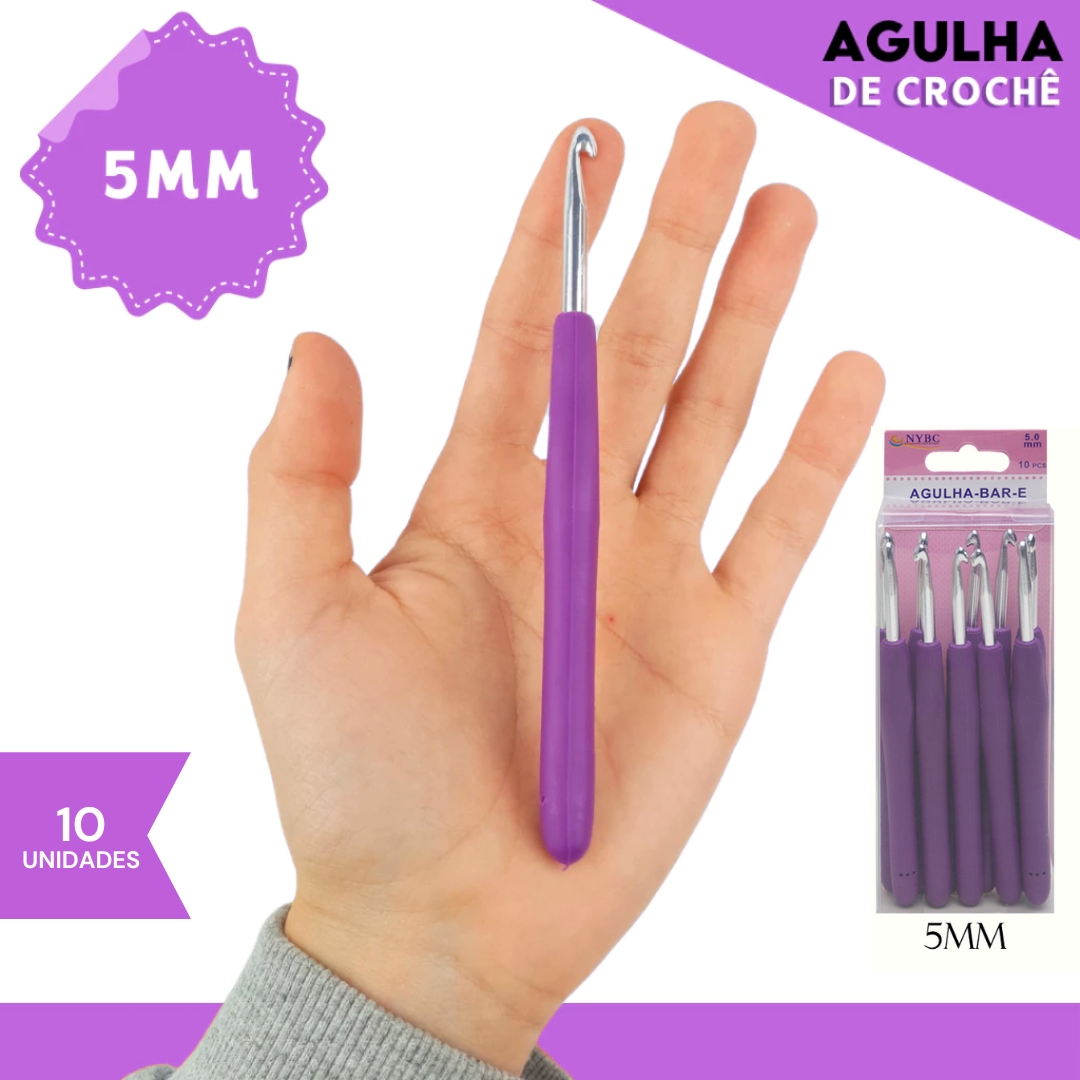 Agulha de Crochê Soft Cabo Emborrachado - Pct C/10 Unid. Tam:5.0MM
