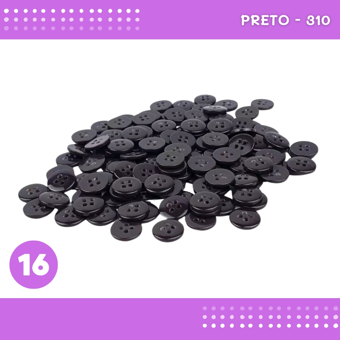 Botão de Camisaria 4 Furos 01485 Tam:16 - Pct c/144 unidades