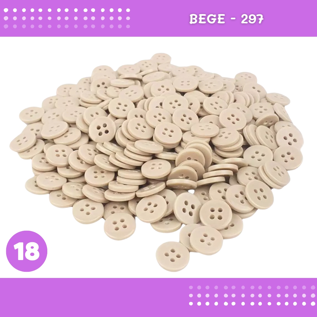 Botão de Camisaria 4 Furos 01485 Tam:18 - Pct c/144 Unid. Cor:BEGE-297