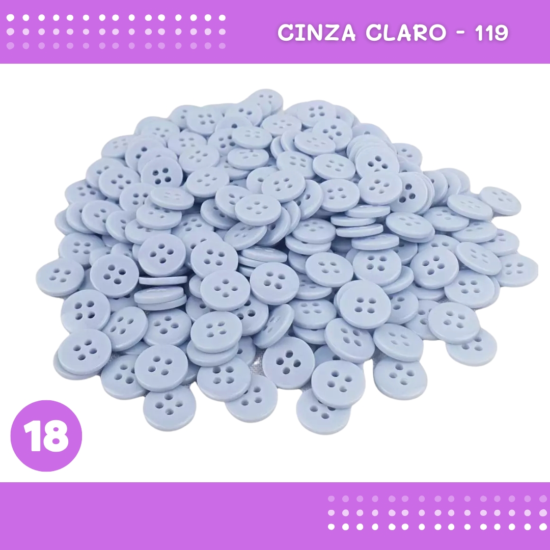 Botão de Camisaria 4 Furos 01485 Tam:18 - Pct c/144 Unid. Cor:CINZA-CLARO-119