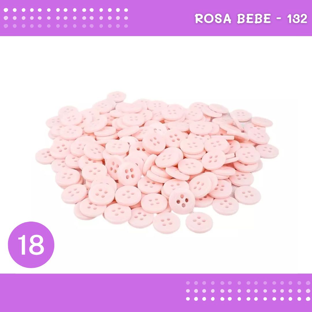 Botão de Camisaria 4 Furos 01485 Tam:18 - Pct c/144 Unid. Cor:ROSA-BEBE-132