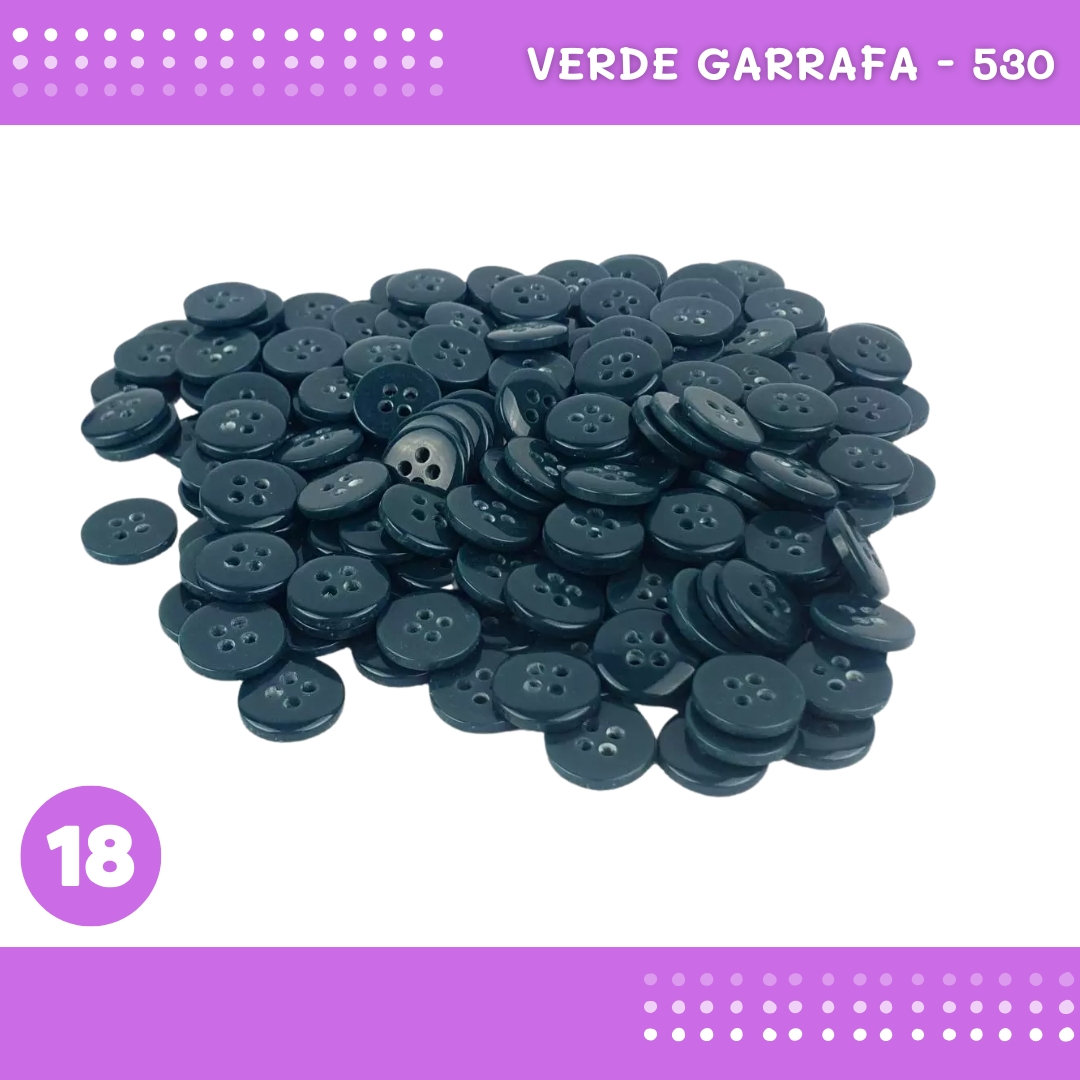 Botão de Camisaria 4 Furos 01485 Tam:18 - Pct c/144 Unid. Cor:VERDE-GARRAFA-530