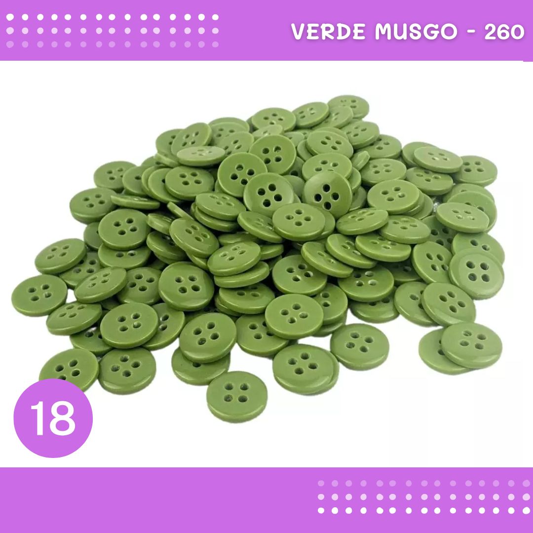 Botão de Camisaria 4 Furos 01485 Tam:18 - Pct c/144 Unid. Cor:VERDE-MUSGO-260