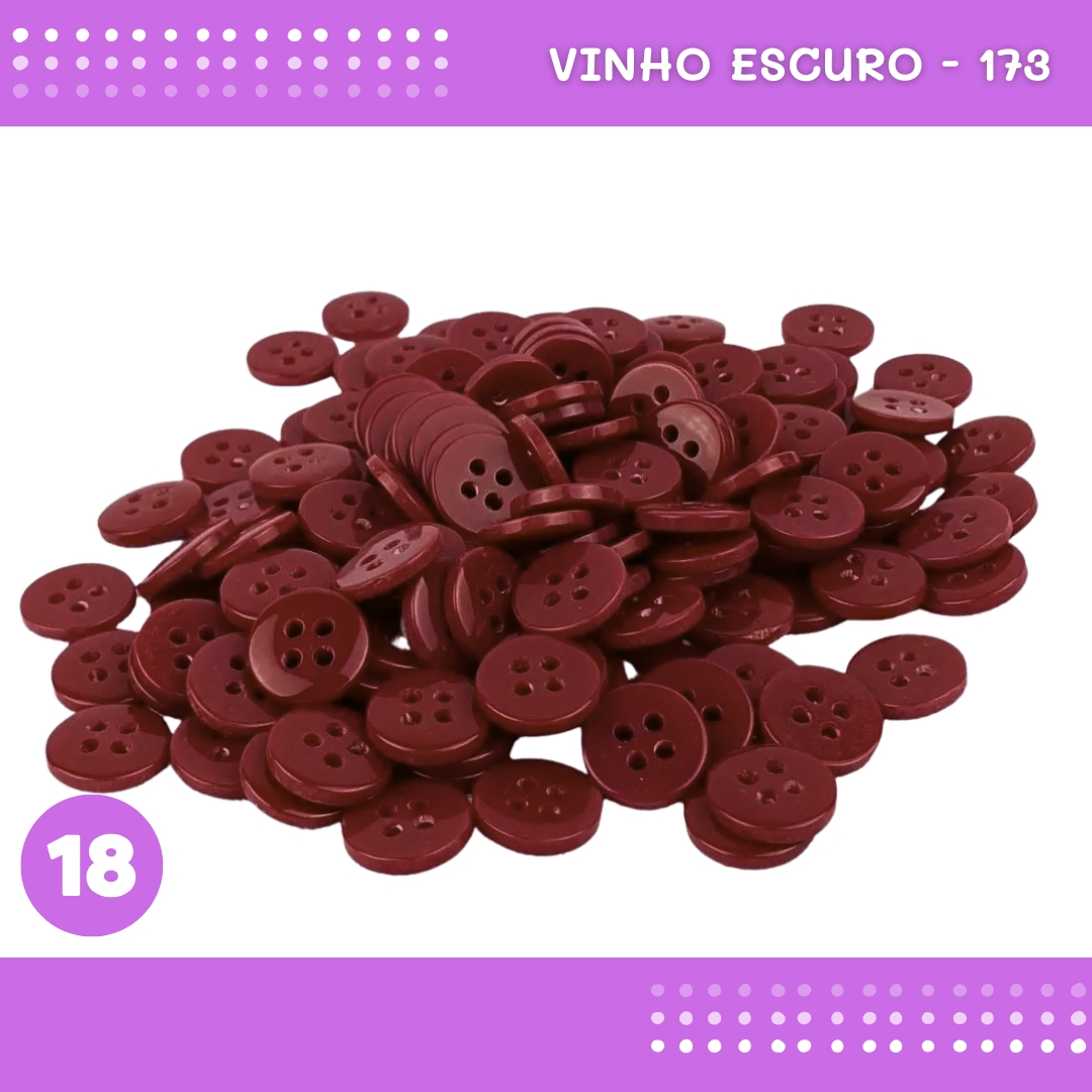 Botão de Camisaria 4 Furos 01485 Tam:18 - Pct c/144 Unid. Cor:VINHO-ESCURO-173