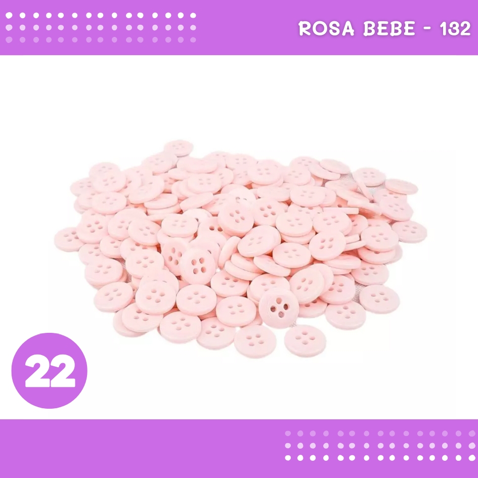 Botão De Camisaria 4 Furos 01485 Tam:22 - Pct C/ 144 Unid. Cor:ROSA-BEBE-132