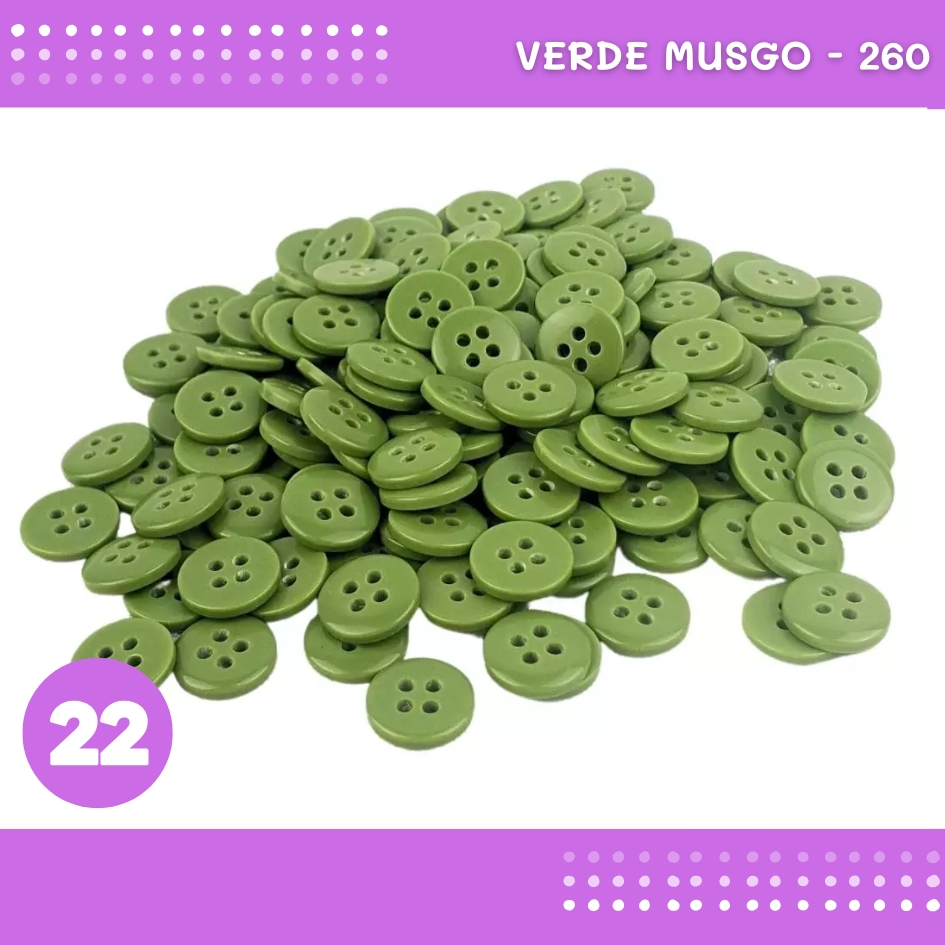 Botão De Camisaria 4 Furos 01485 Tam:22 - Pct C/ 144 Unid. Cor:VERDE-MUSGO-260