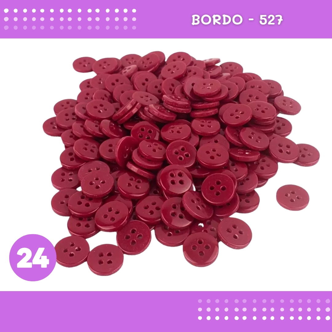 Botão de Camisaria 4 Furos 01485 Tam:24 - Pct c/144 Unid. Cor:BORDO-527