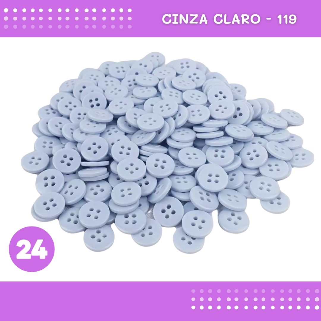 Botão de Camisaria 4 Furos 01485 Tam:24 - Pct c/144 Unid. Cor:CINZA-CLARO-119