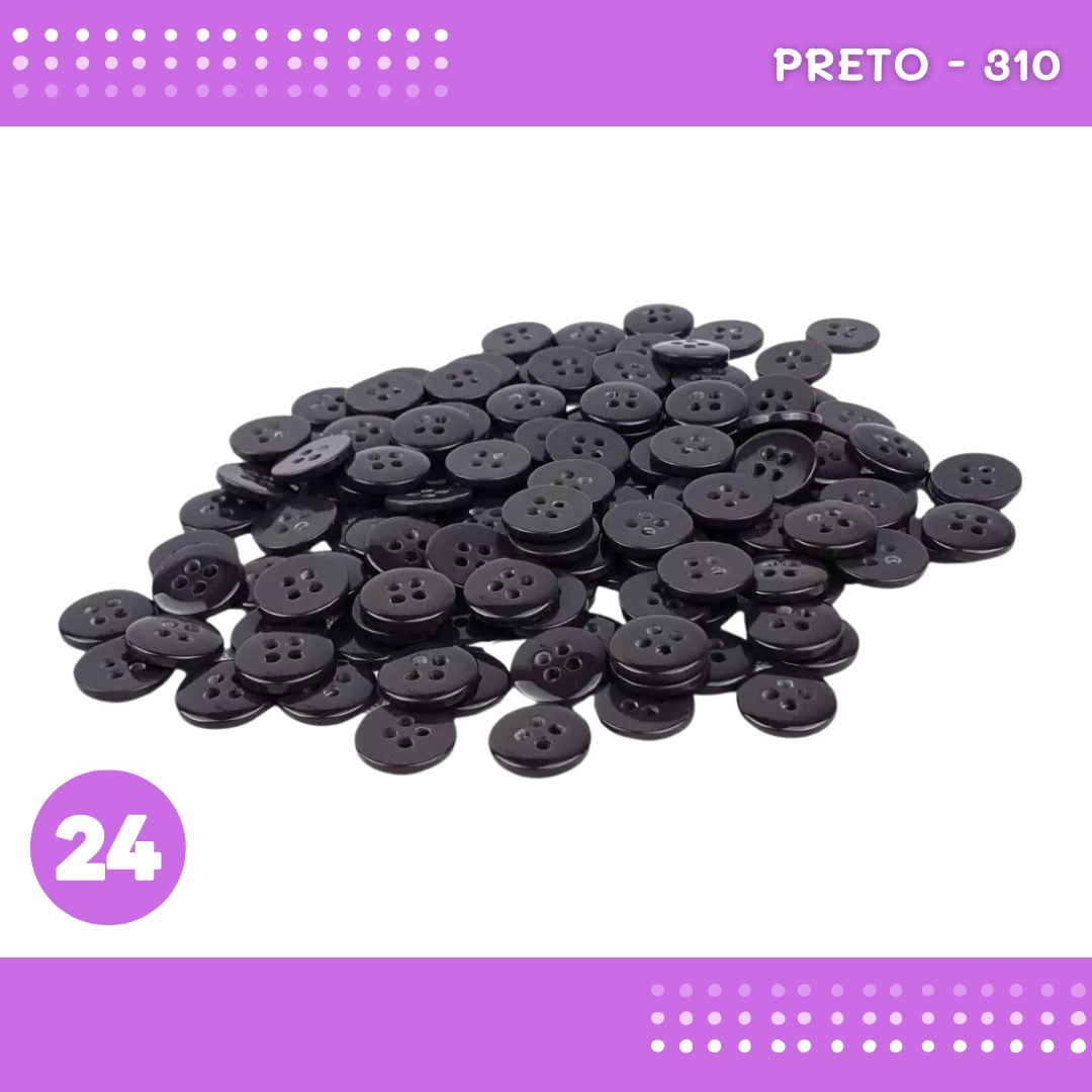 Botão de Camisaria 4 Furos 01485 Tam:24 - Pct c/144 Unid. Cor:PRETO-310
