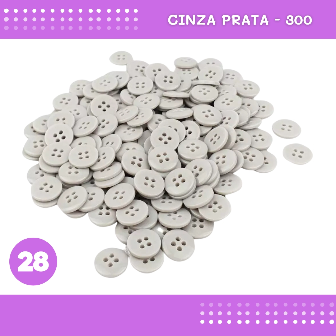 Botão de Camisaria 4 Furos 01485 Tam:28 - Pct c/144 Unid. Cor:CINZA-PRATA-300