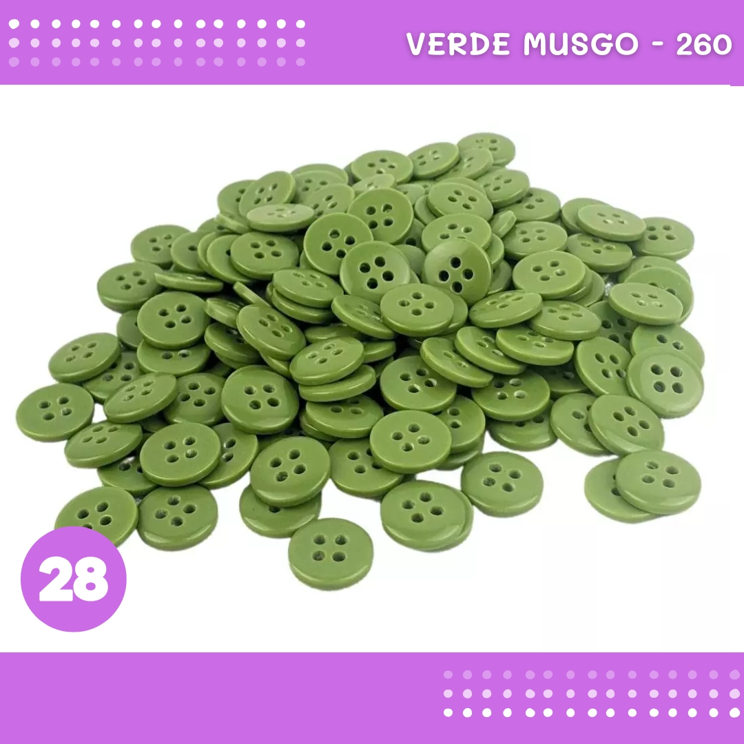 Botão de Camisaria 4 Furos 01485 Tam:28 - Pct c/144 Unid. Cor:VERDE-MUSGO-260
