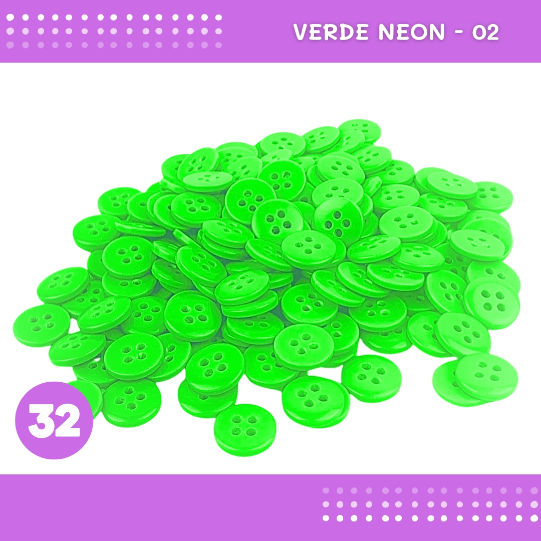 Botão de Camisaria 4 Furos 01485 Tam:32 - Pct c/144 Unid. Cor:VERDE-NEON-02