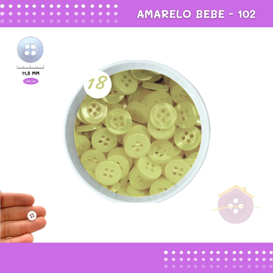 Botão De Camisaria C/Borda 4 Furos 01467 Tam:18 - Pct C/ 144 Unid. Cor:AMARELO-BEBE-102