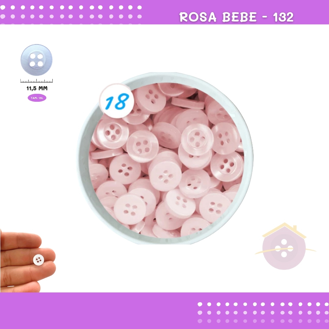 Botão De Camisaria C/Borda 4 Furos 01467 Tam:18 - Pct C/ 144 Unid. Cor:ROSA-BEBE-132