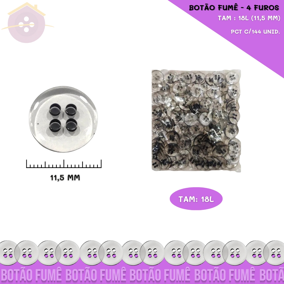 Botão Fumê 4 Furos 01379 - Pct C/144 Unid. Tamanho:18
