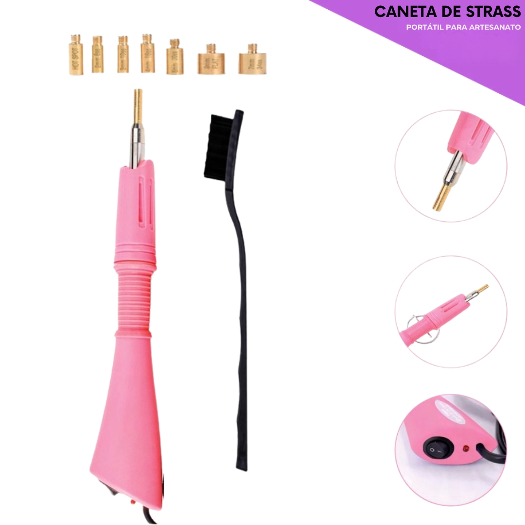 O Aplicador de Strass é versátil: basta aquecer o strass com a ponta do aplicador e colá-lo em vários materiais como couro, papel, cartão, lã - algodão, linho, lã, viscose, tule, jeans, lycra, algodão Jersey, seda, sintéticos (poliéster).