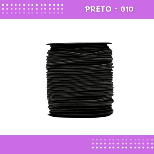 Elástico Roliço P/Costura E Artesanato 2.2mm - Rolo C/50 Mts Cor:Preto-310