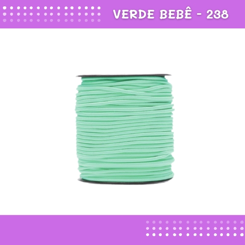 Elástico Roliço P/Costura E Artesanato 2.2mm - Rolo C/50 Mts Cor:Verde-Bebe-238