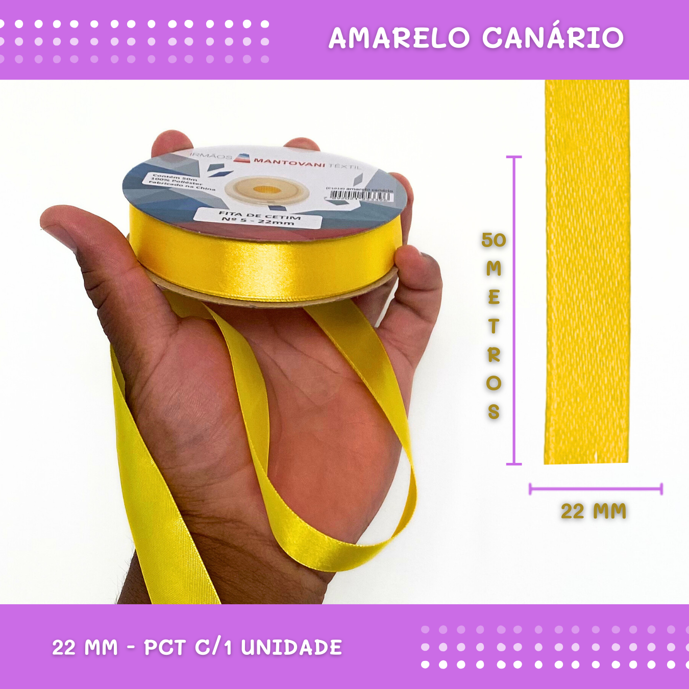 Fita de Cetim Lisa - 22mm - Rolo C/50 Mts COR:AMARELO-CANARIO
