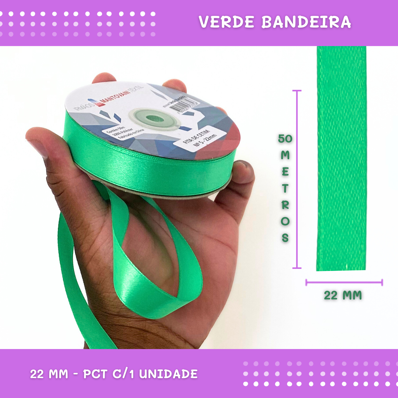 Fita de Cetim Lisa - 22mm - Rolo C/50 Mts COR:VERDE-BANDEIRA