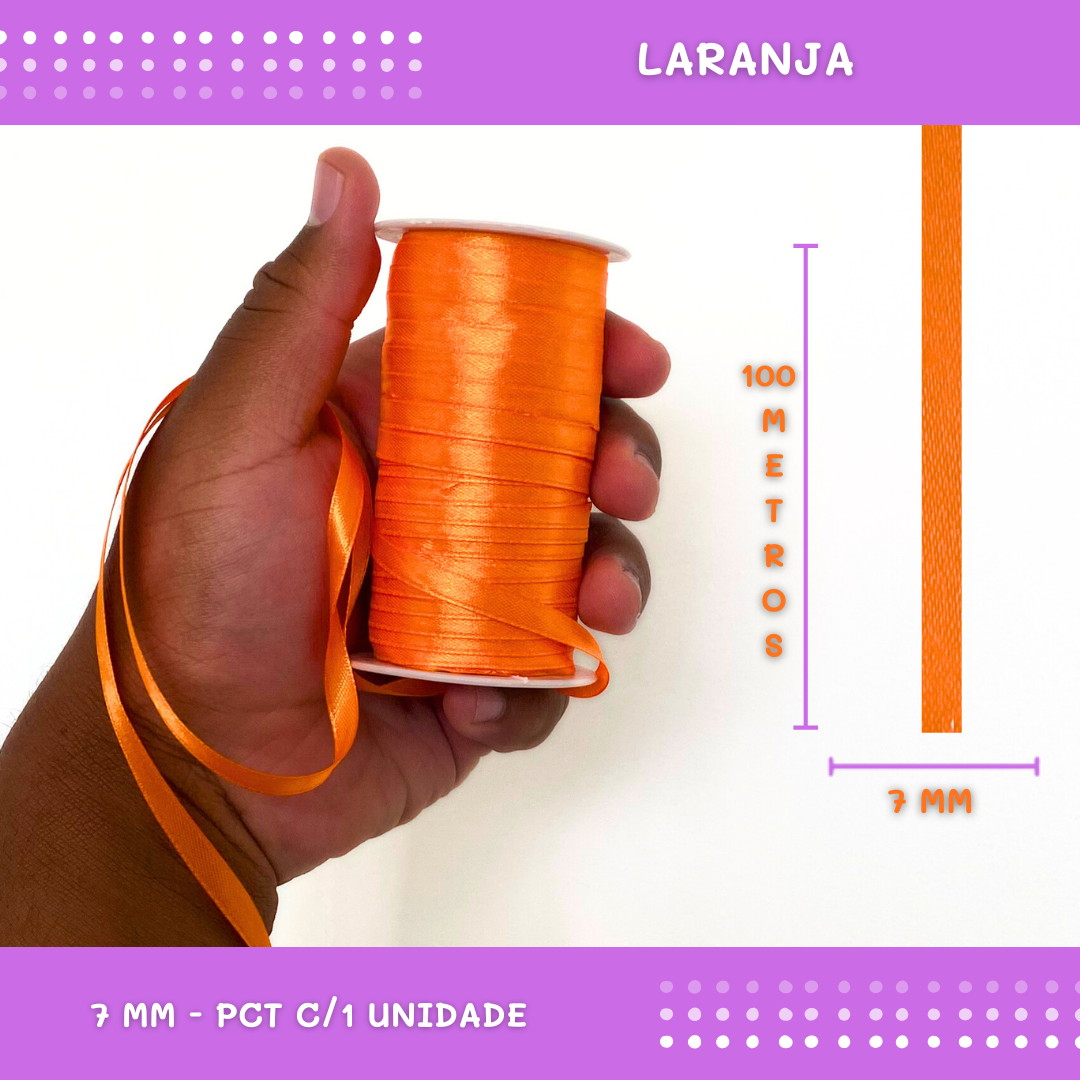 Fita de Cetim Lisa - 7mm - Rolo C/100 Metros COR: LARANJA