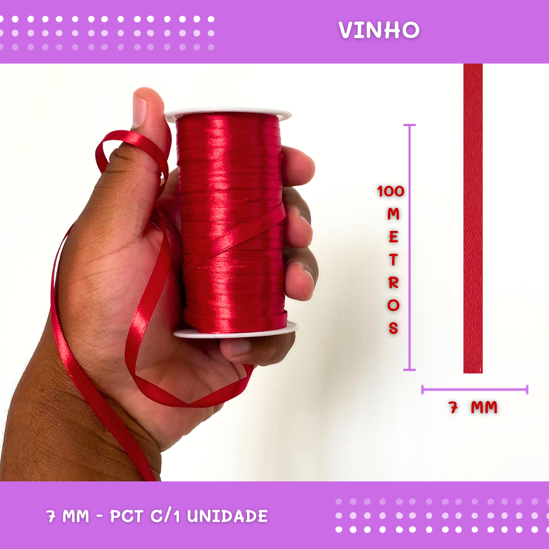 Fita de Cetim Lisa - 7mm - Rolo C/100 Metros COR: VINHO