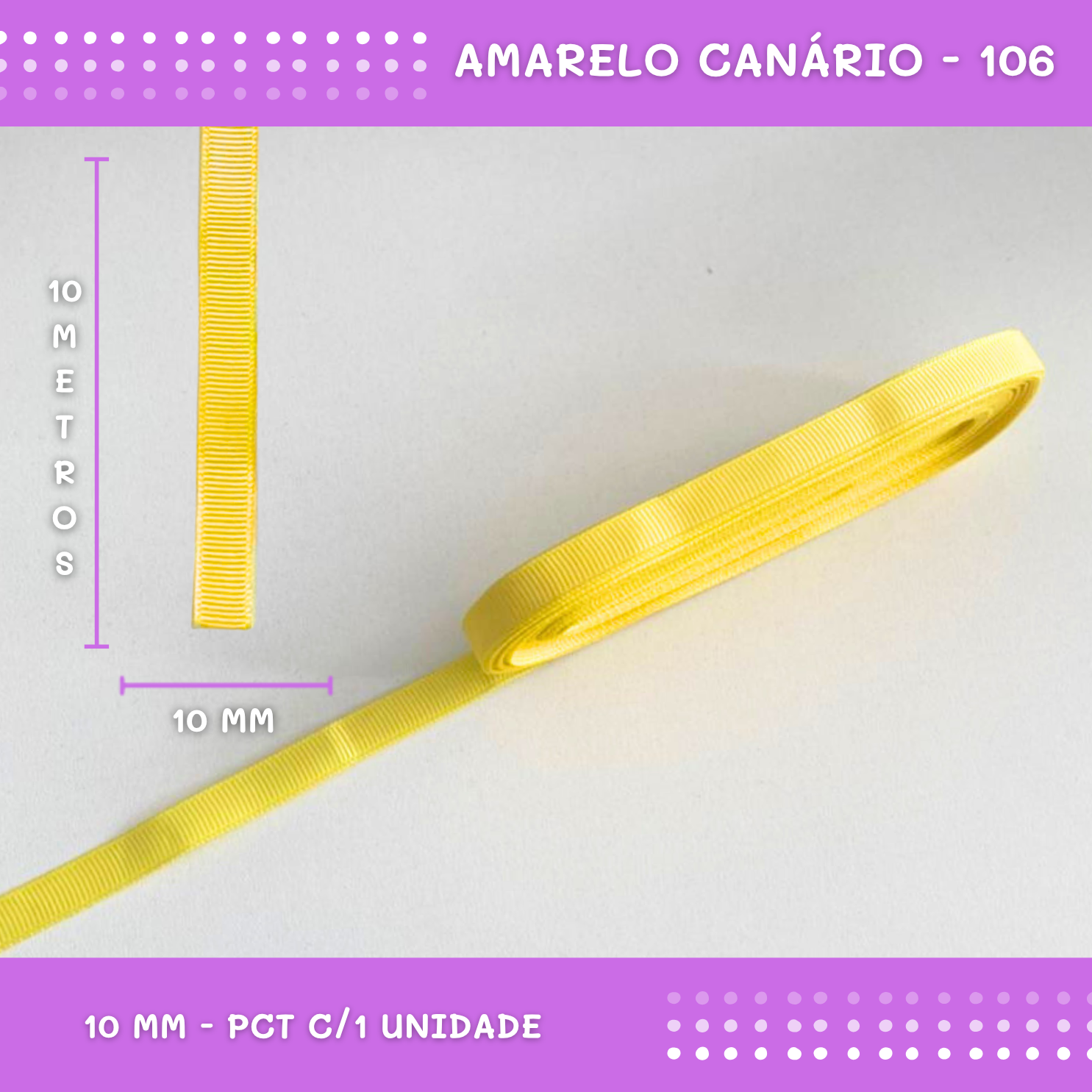 Fita de Gorgurão P/Laços - Nº2 (10mm) - COR:AMARELO-CANARIO-106