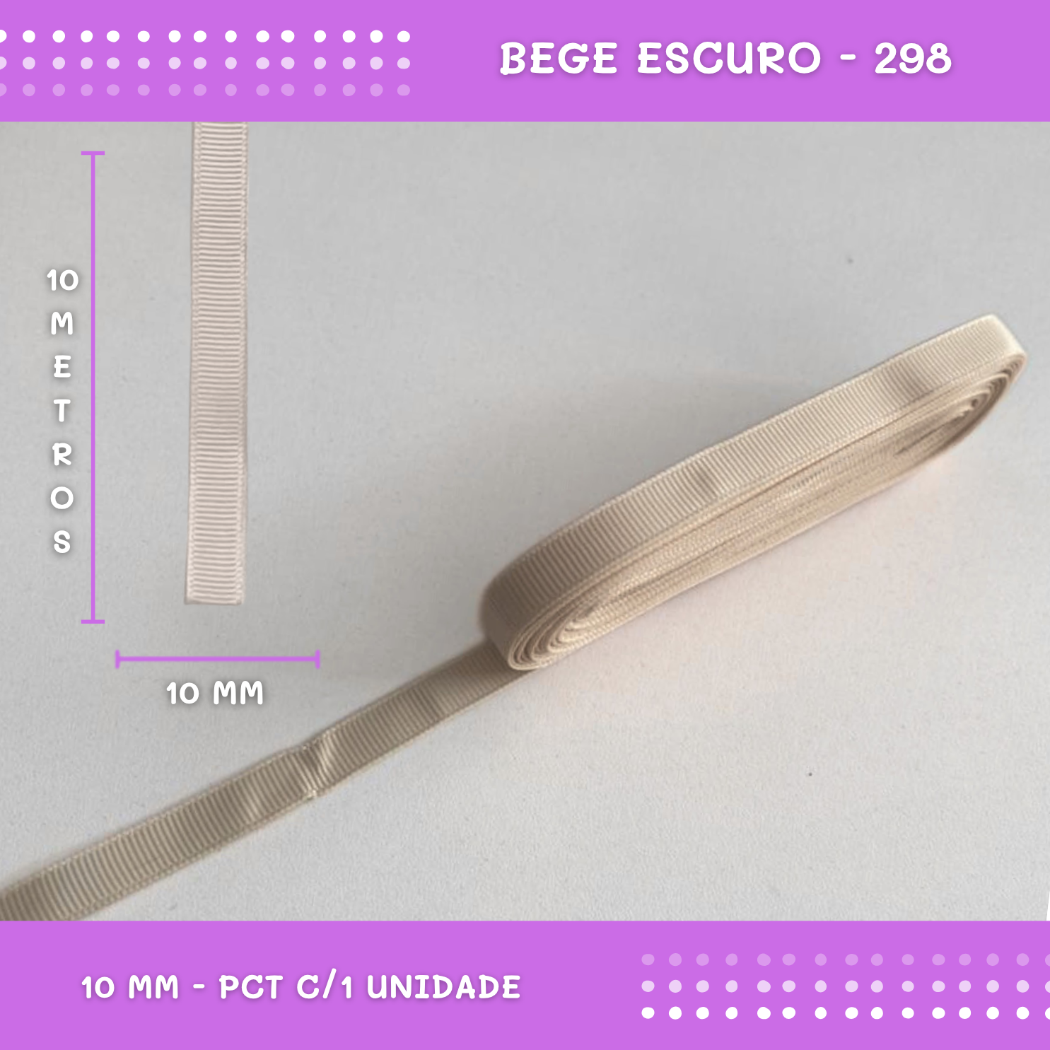 Fita de Gorgurão P/Laços - Nº2 (10mm) - COR:BEGE-ESCURO-298