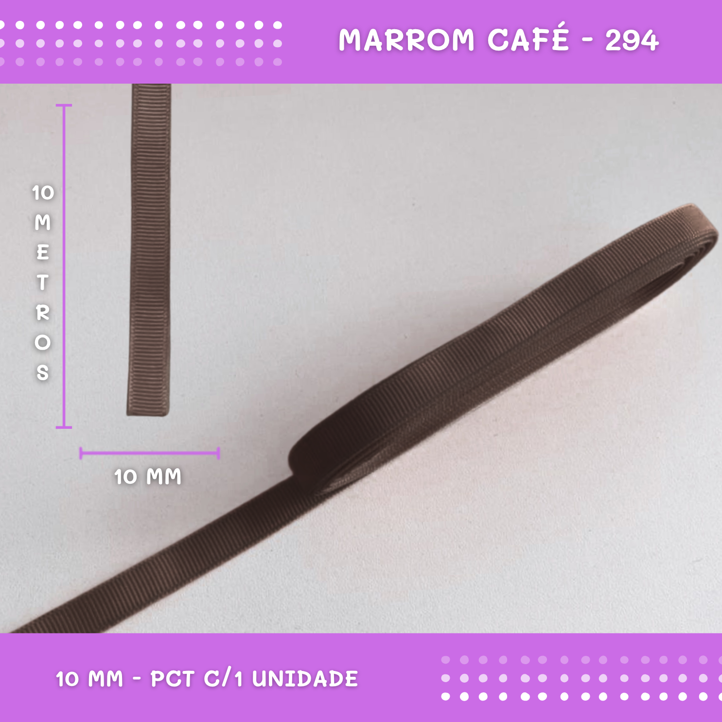 Fita de Gorgurão P/Laços - Nº2 (10mm) - COR:MARROM-CAFE-294
