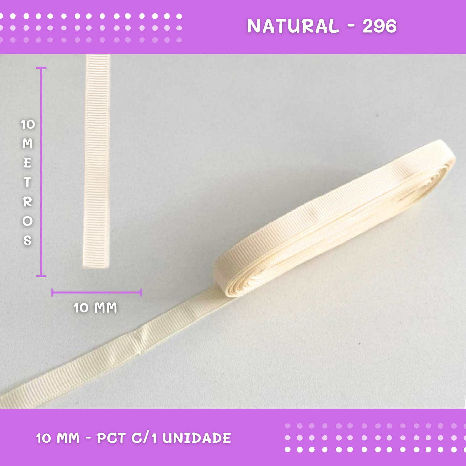 Fita de Gorgurão P/Laços - Nº2 (10mm) - COR:NATURAL-296