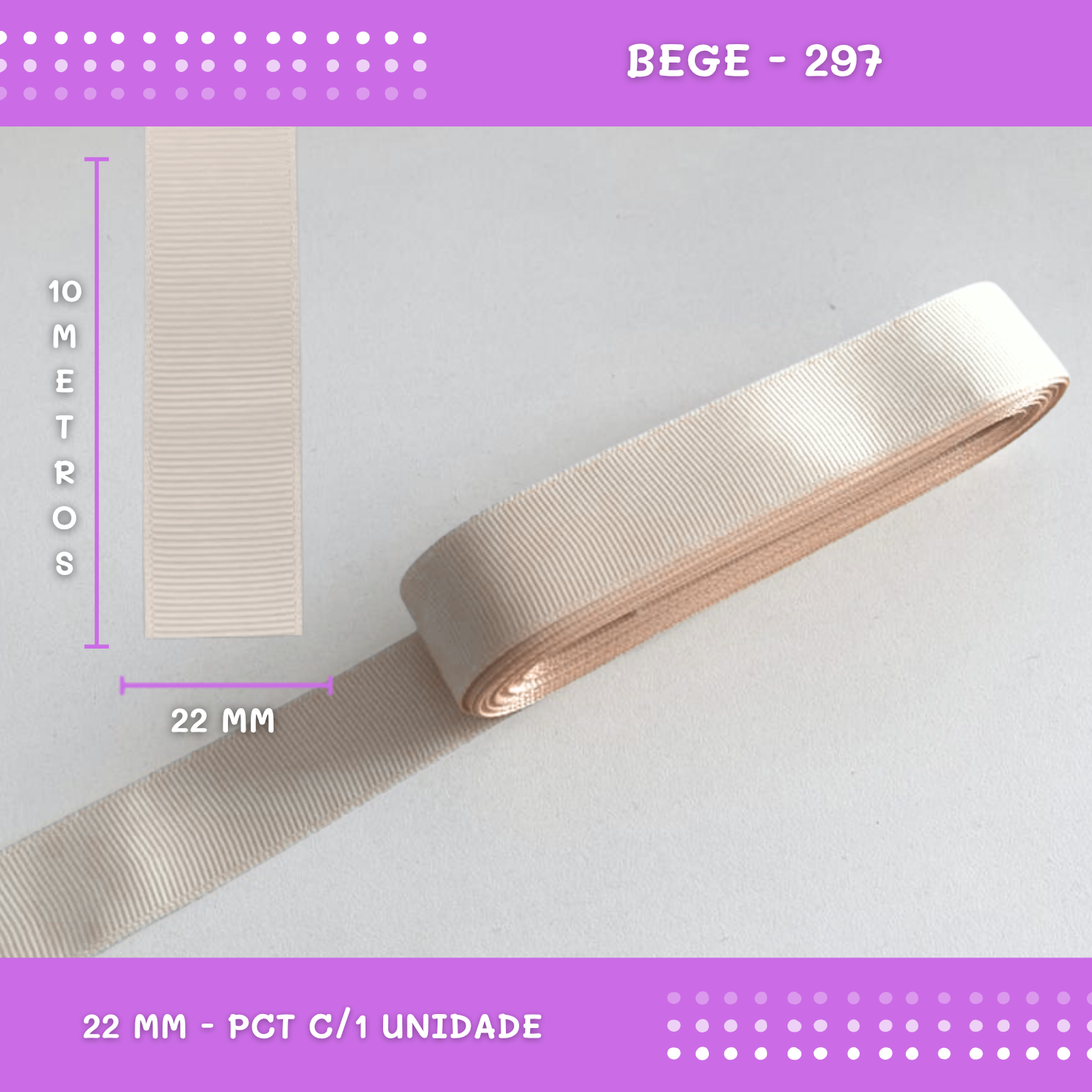 Fita de Gorgurão P/Laços - Nº5 (22mm) - COR:BEGE-297