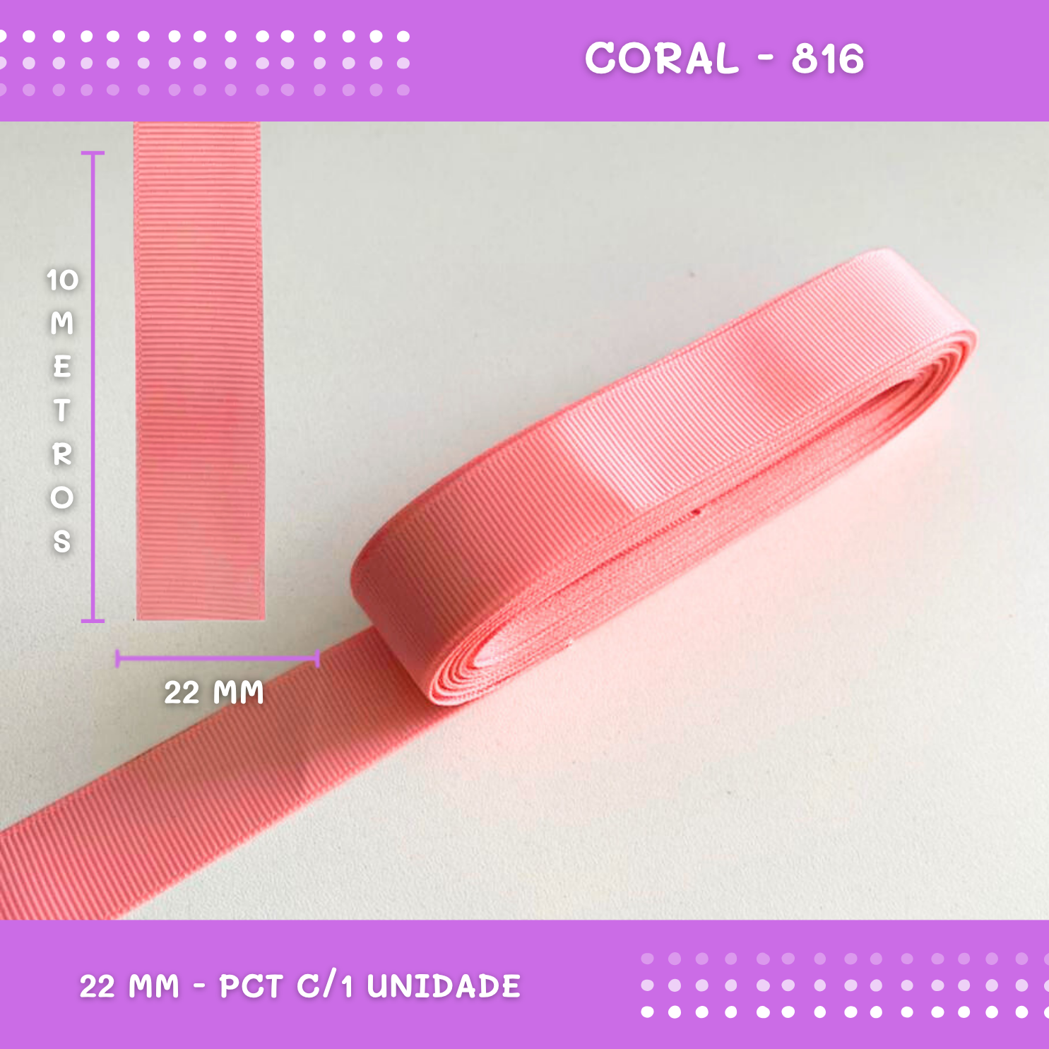Fita de Gorgurão P/Laços - Nº5 (22mm) - COR:CORAL-816