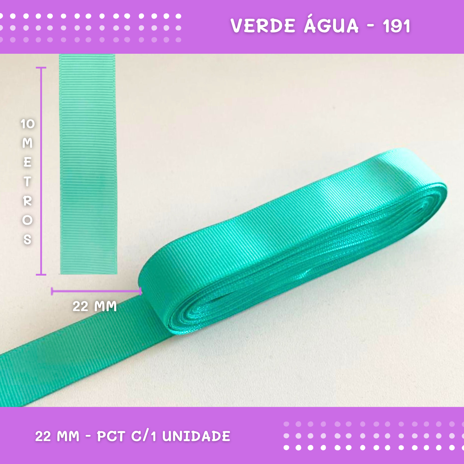 Fita de Gorgurão P/Laços - Nº5 (22mm) - COR:VERDE-AGUA-191