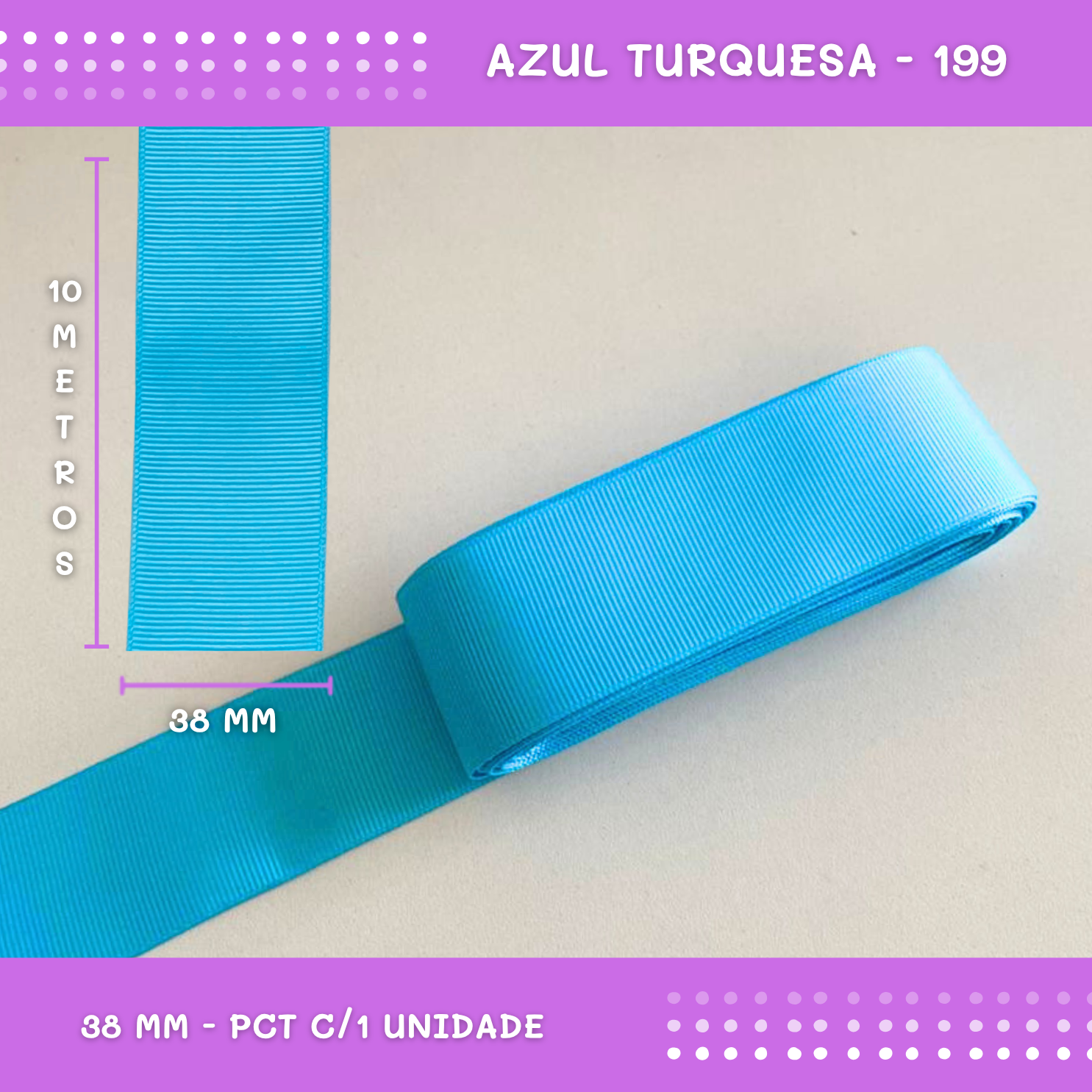 Fita de Gorgurão P/Laços - Nº9 (38mm) - COR:AZUL-TURQUESA-199
