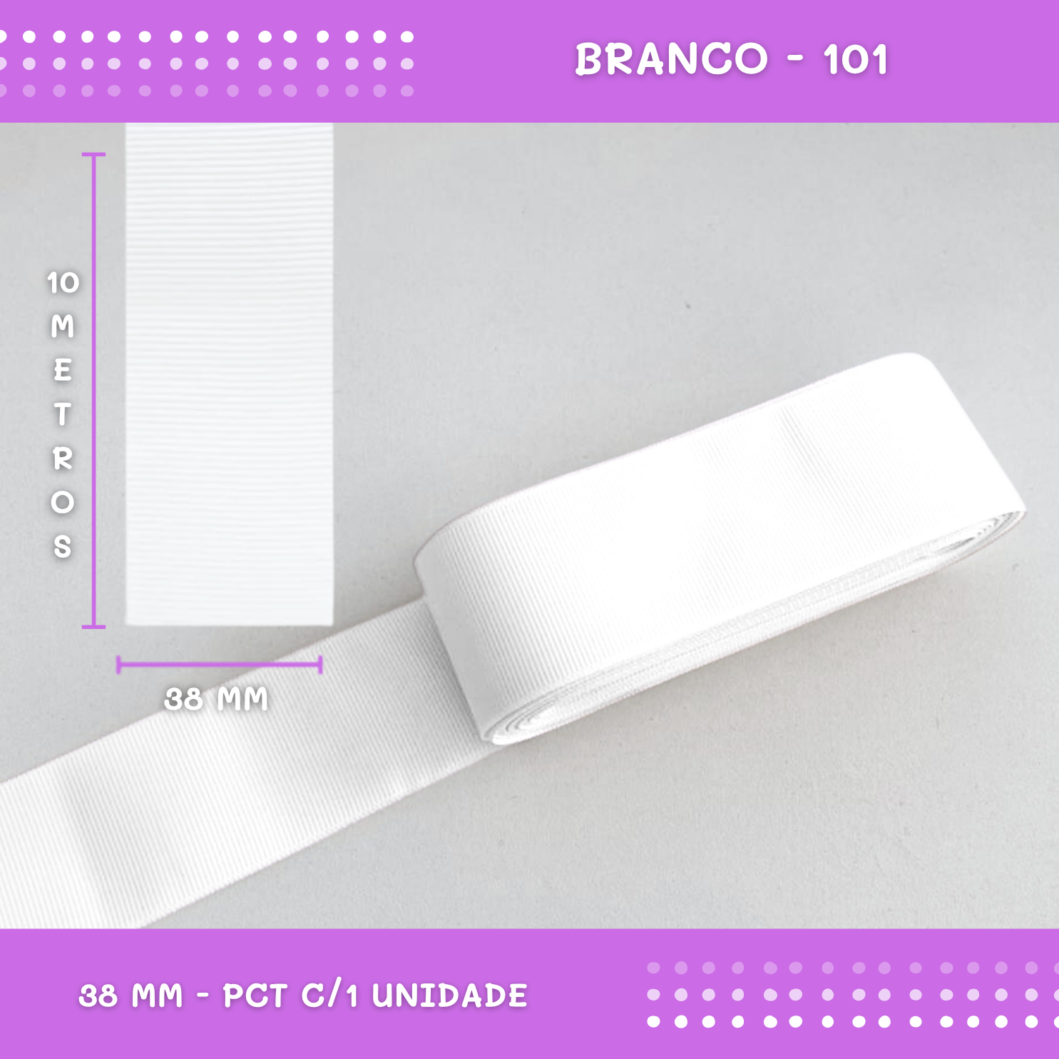 Fita de Gorgurão P/Laços - Nº9 (38mm) - COR:BRANCO-101